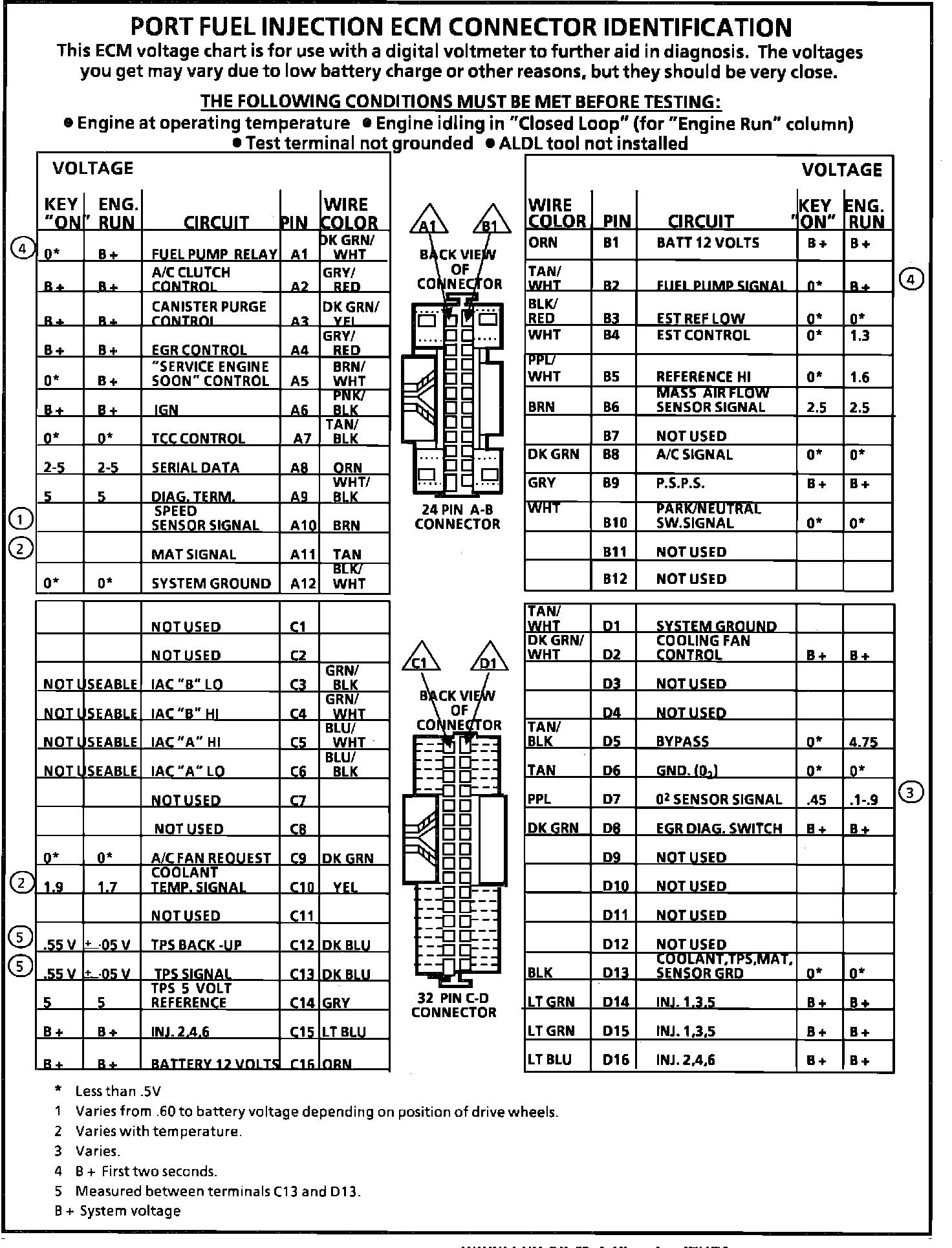 ECM Connector Terminal End View: