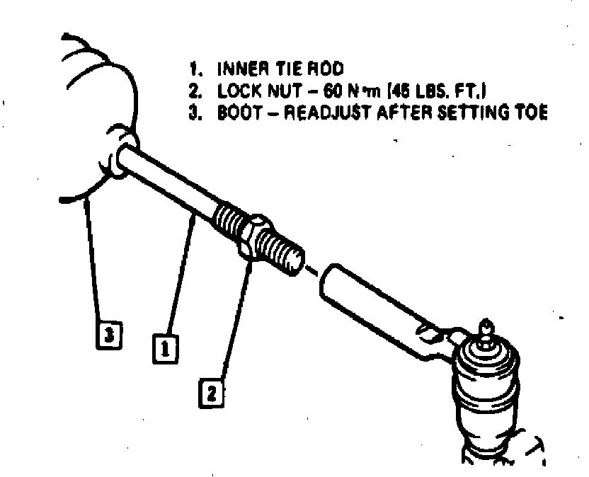3. Check ball joints and tie rod ends. If they are excessively loose, correct before making adjustment.