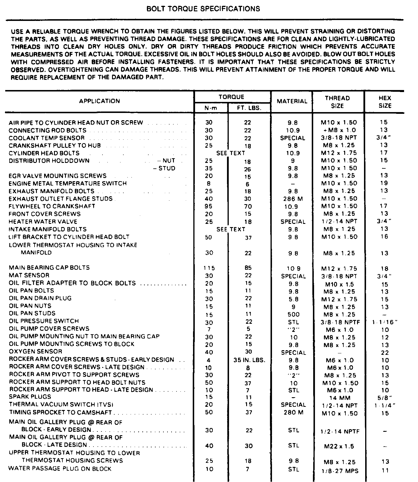 Torque Specifications: