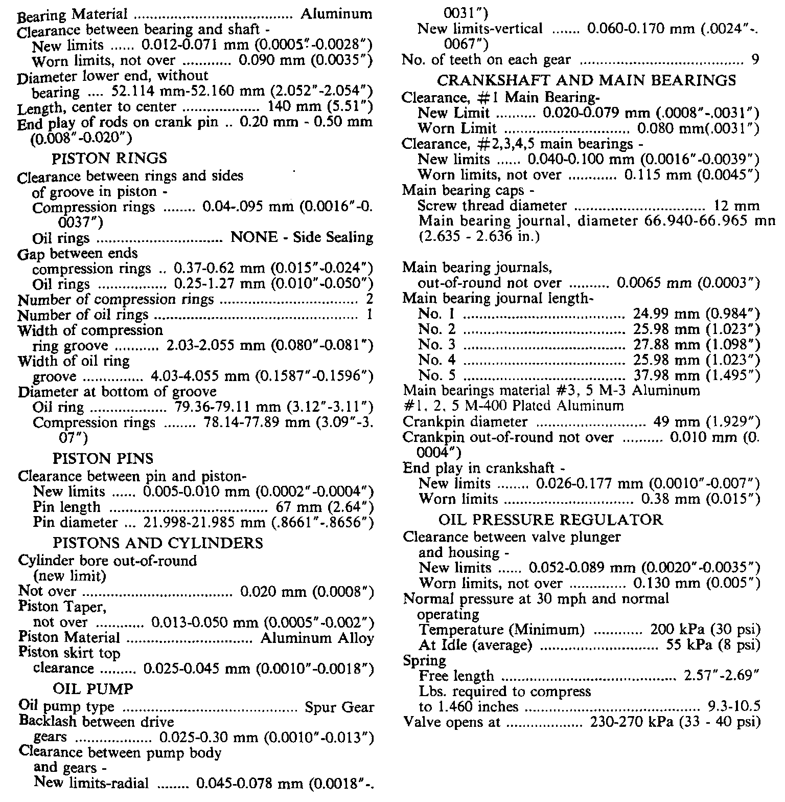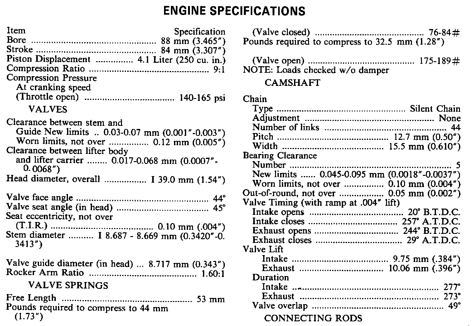 Engine Specifications:
