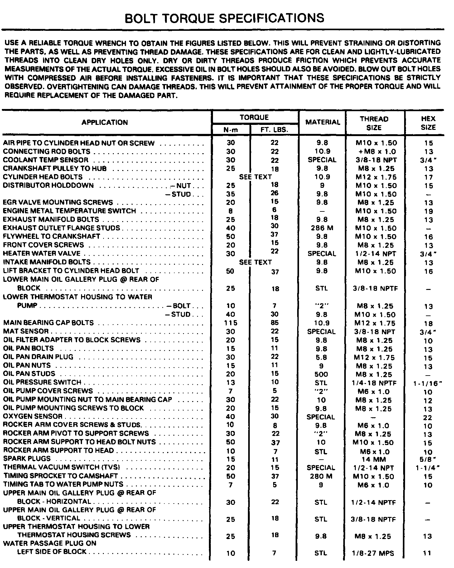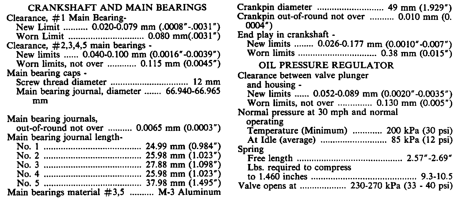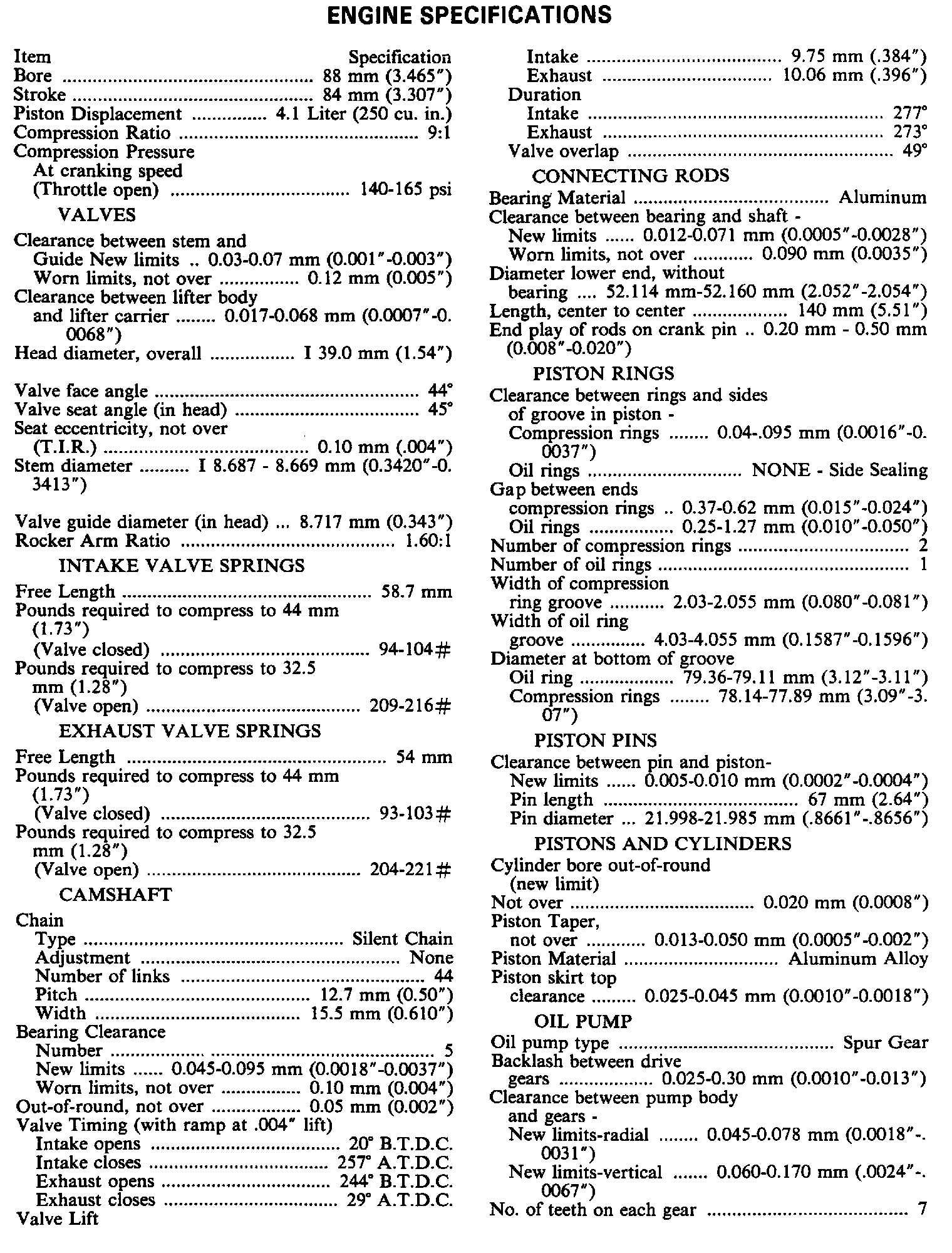 Continued Engine Specifications: