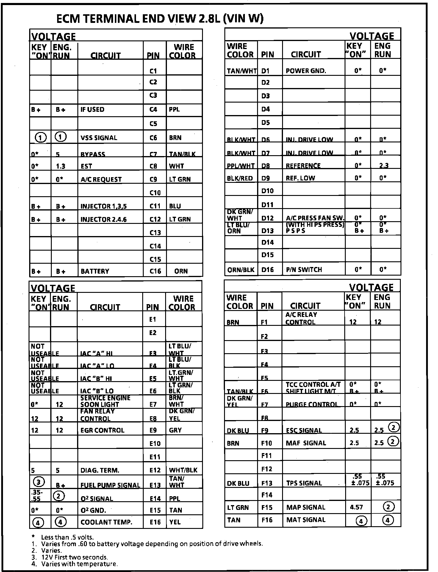 ECM Terminal ID & Voltage Specifications (Part 2 of 2):