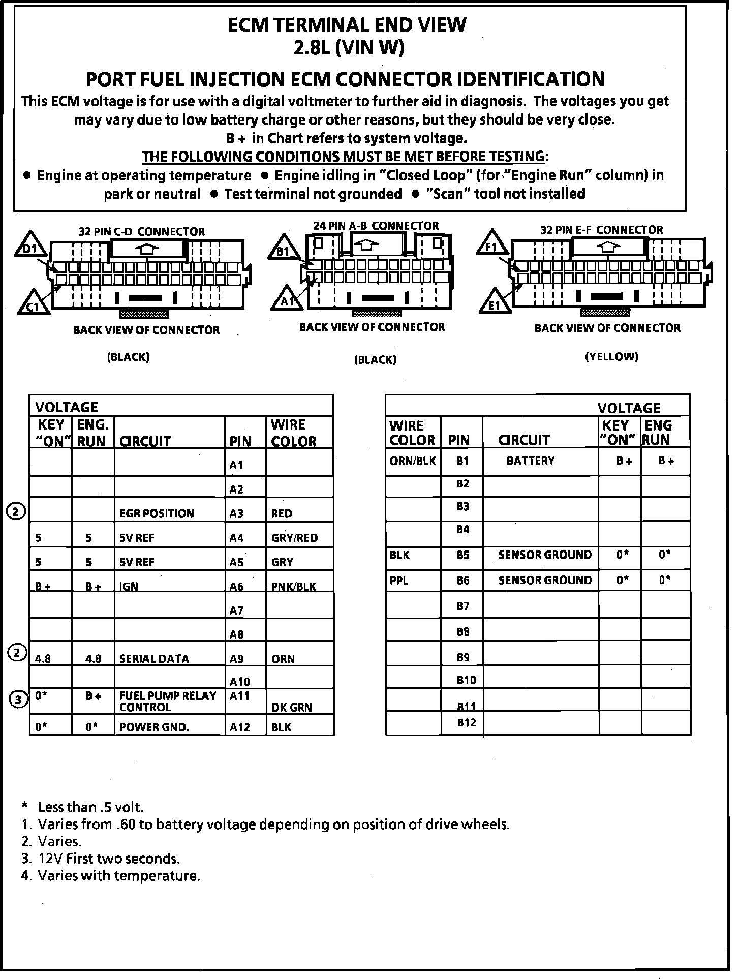 ECM Terminal ID & Voltage Specifications (Part 1 of 2):