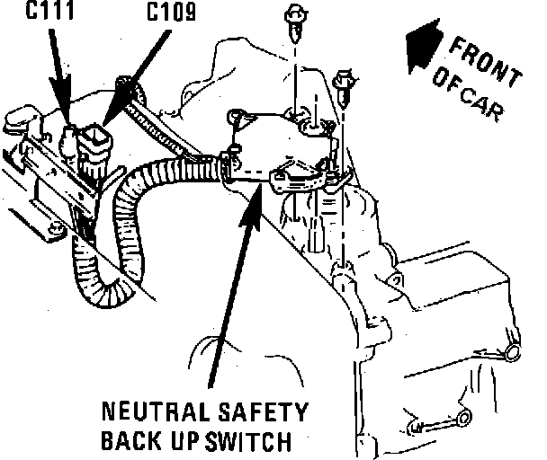 The Neutral Safety Back Up Switch is located on the LH rear of engine, top of transaxle.
