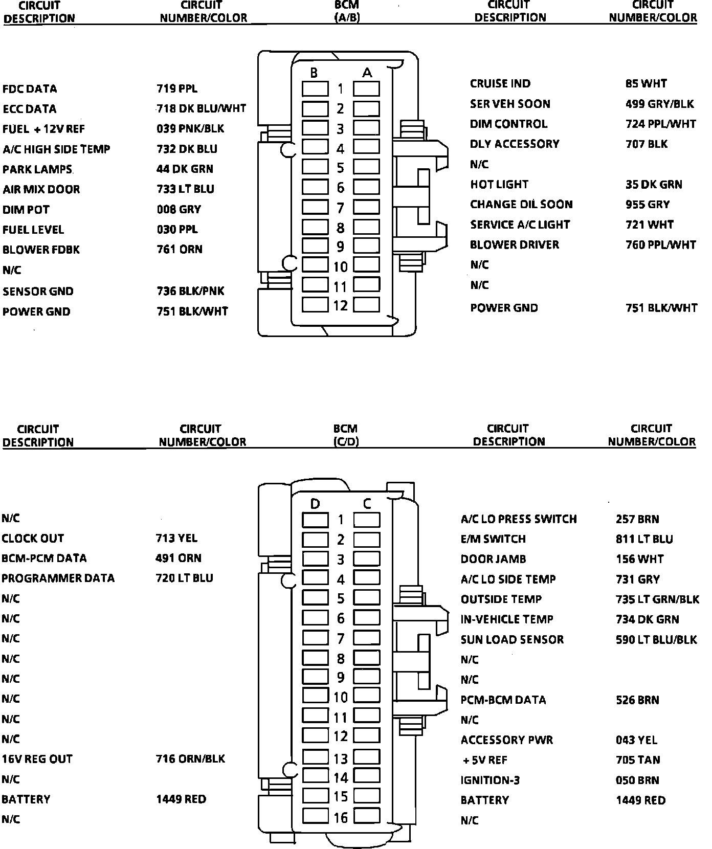 BCM Connector Pinout: