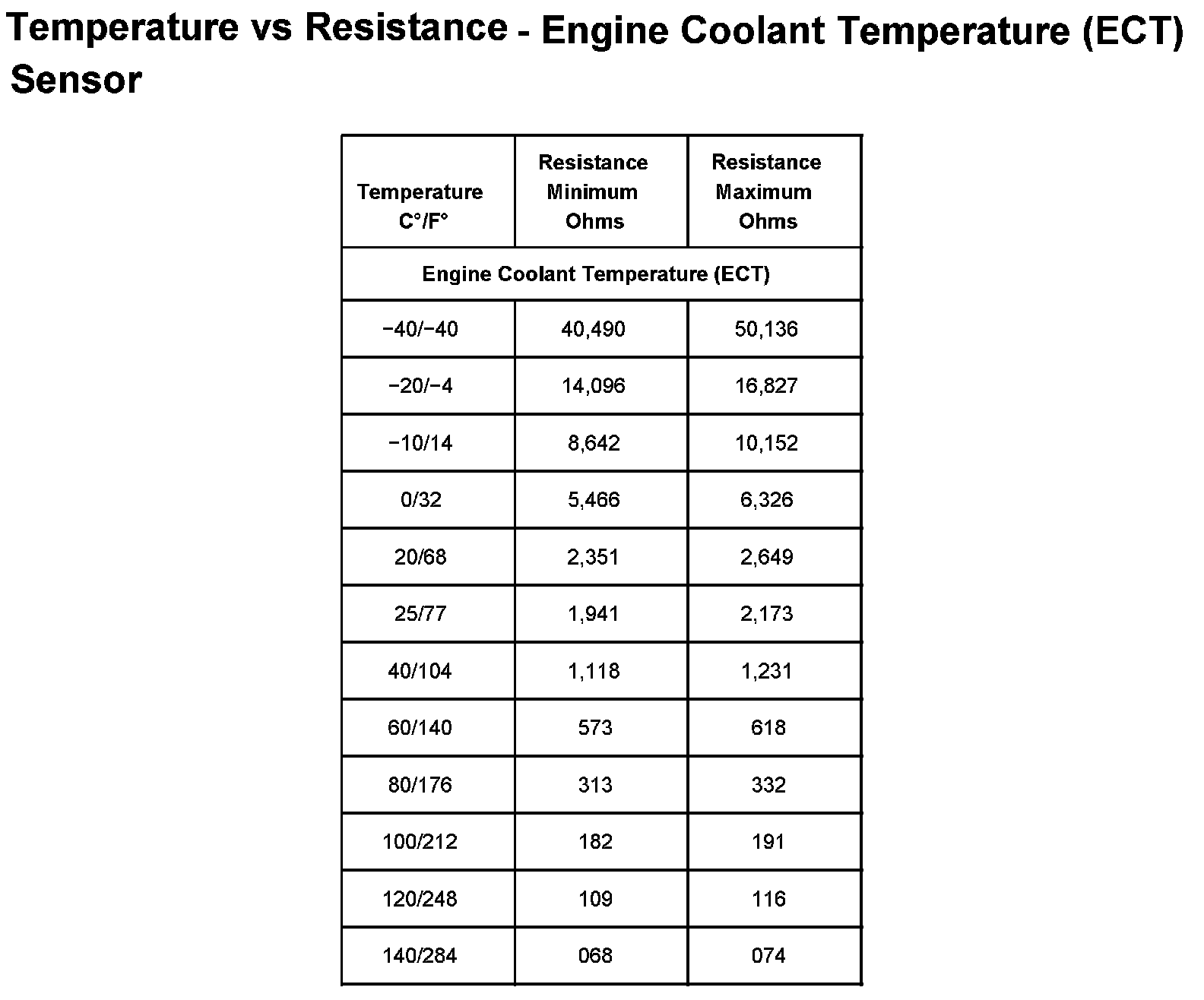 Temperature Vs Resistance - Engine Coolant Temperature (ECT) Sensor: