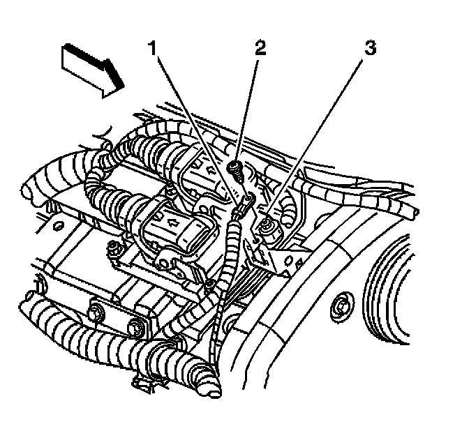 5. Install the screw (2) securing the ECM ground wire (1) to the ECM (3).