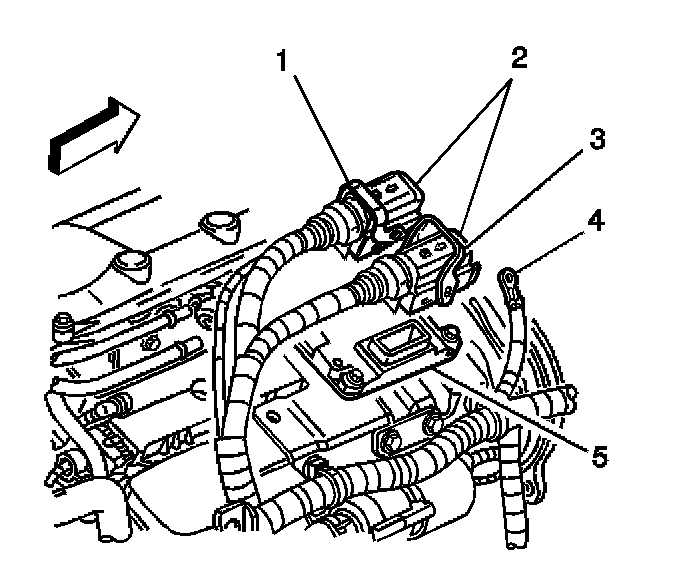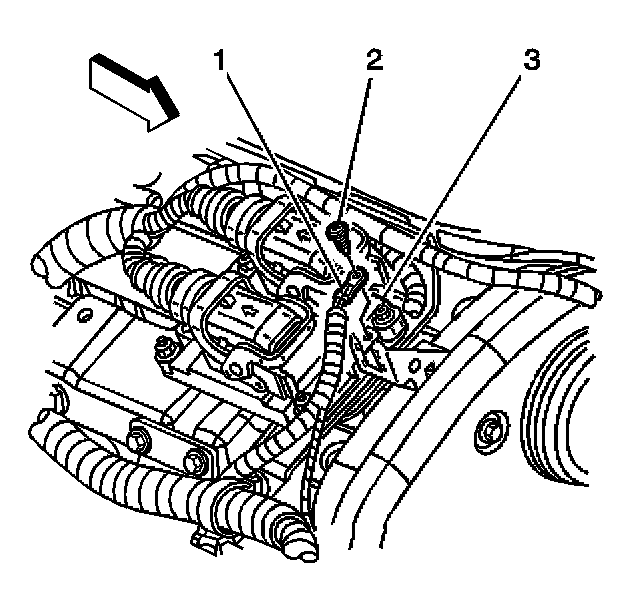 2. Remove the screw(2) securing the engine control module (ECM) ground wire(1) to the ECM(3).