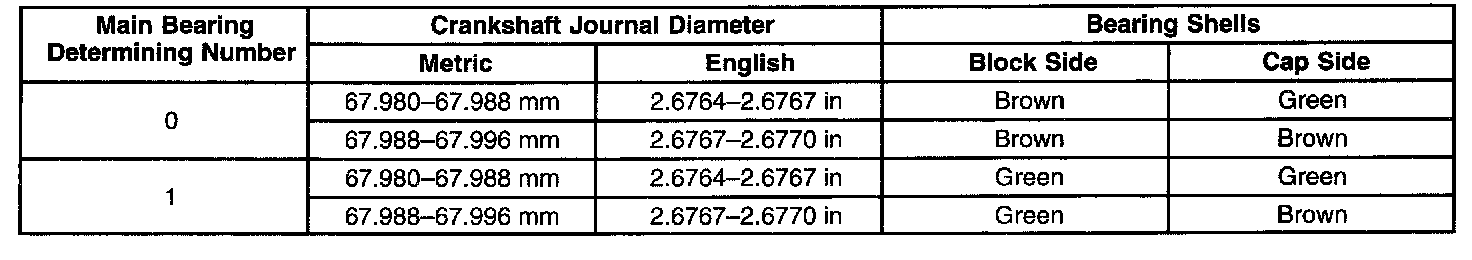 Crankshaft Main Bearing Selection Specifications: