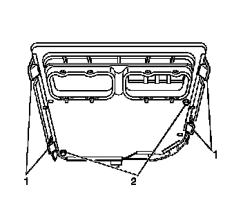 2. Install the transmission control module by seating it fully into the bracket until all of the retaining tabs (1) have engaged the edge of the module edge.