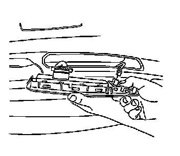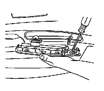 1. Insert a flat - bladed tool under the front edge of the switch to release the retainer from the door trim panel.