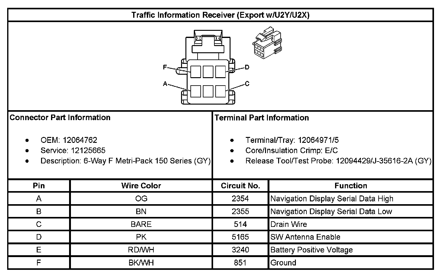 Traffic Information Receiver (Export With RPO Code U2Y/U2X):