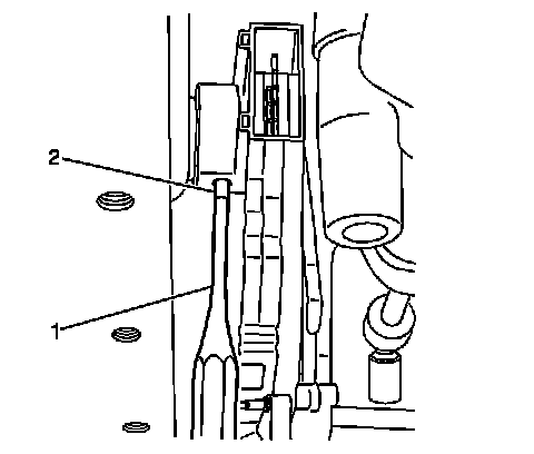 8. Confirm that the manual shift shaft detent lever locating pin (2) is properly engaged with the manual valve link (1).