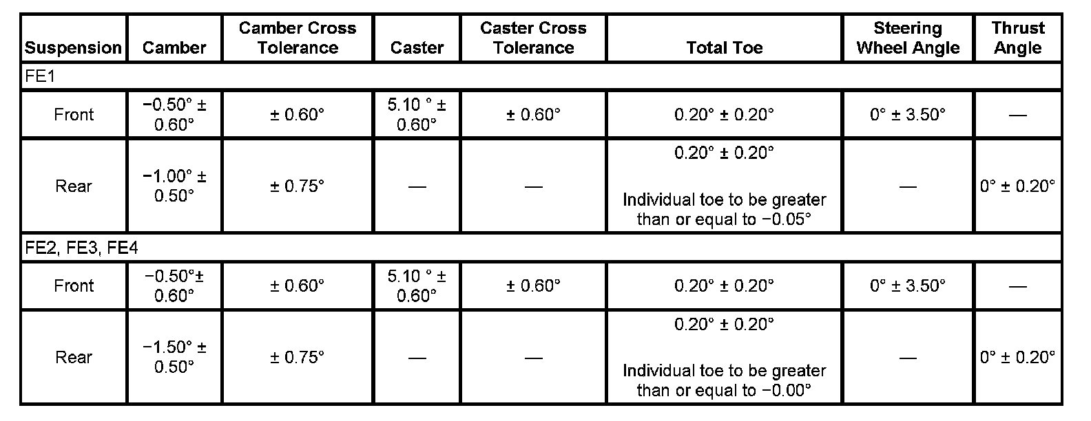 Wheel Alignment Specifications