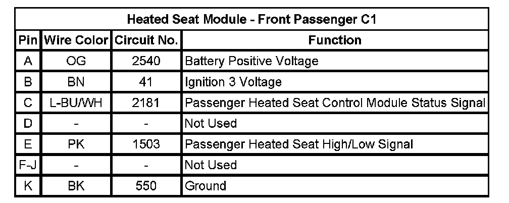 Heated Seat Module - Front Passenger C1