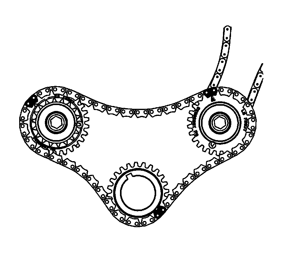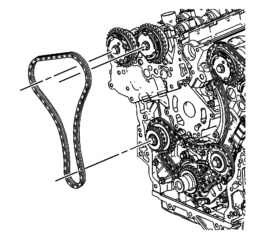 2. Wrap the primary camshaft drive chain around the large sprockets of each camshaft intermediate drive chain idler and the crankshaft sprocket.