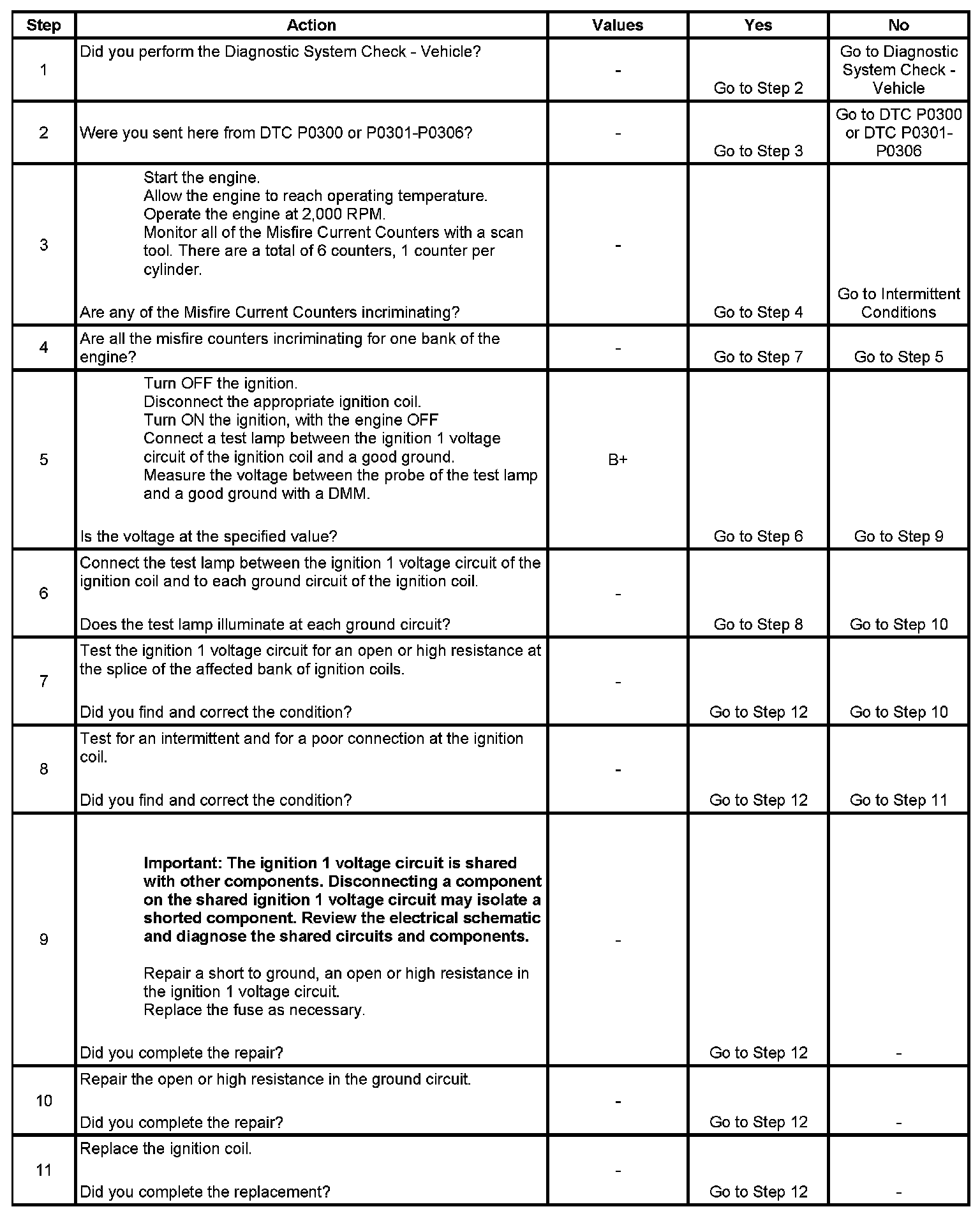 6. This step determines if the ground circuit is open. If the circuit is open, the ignition coils would be inoperative for one bank of the engine.