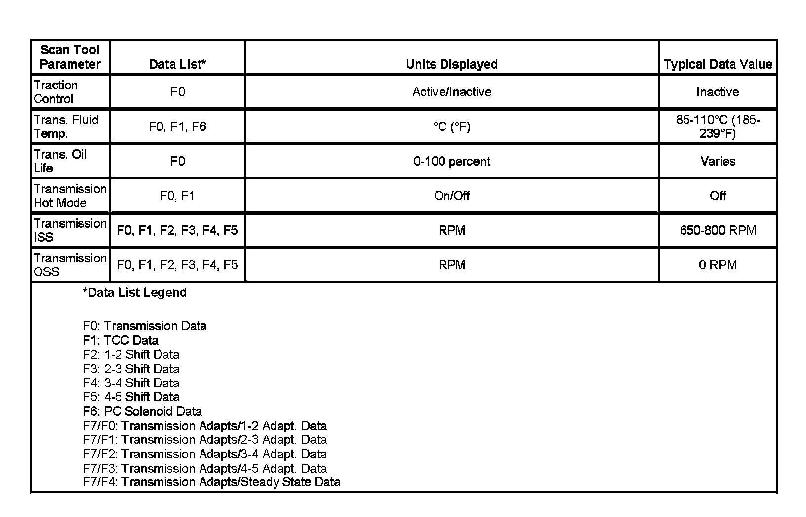 Home >> Cadillac >> 2007 >> CTS V6-2.8L >> Repair and Diagnosis >> Powertrain Management >> Transmission Control Systems >> Testing and Inspection >> Scan Tool Data List