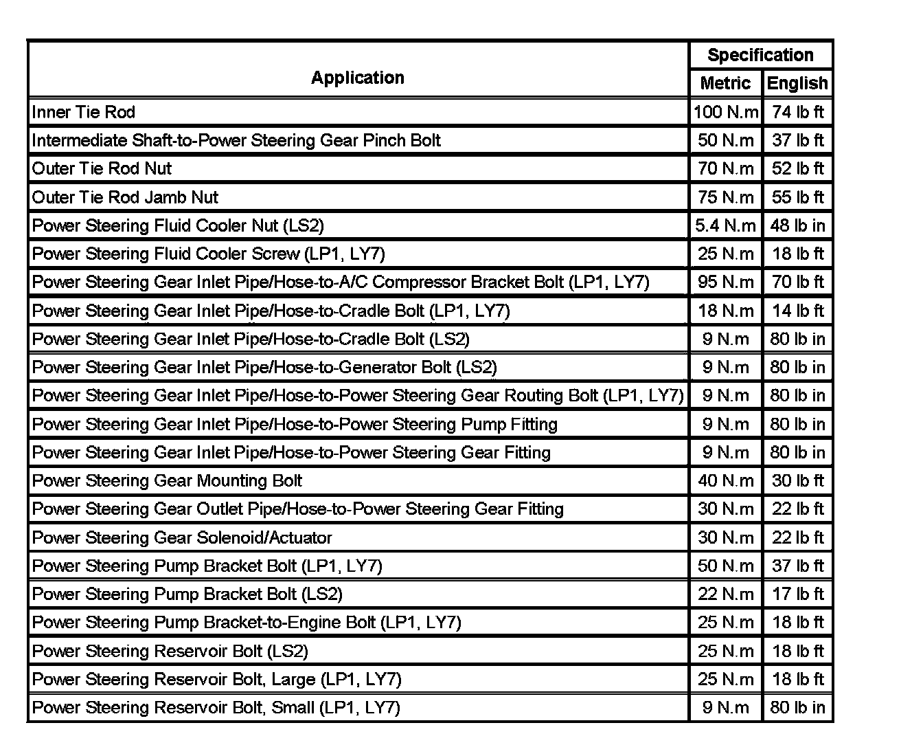 Fastener Tightening Specifications: