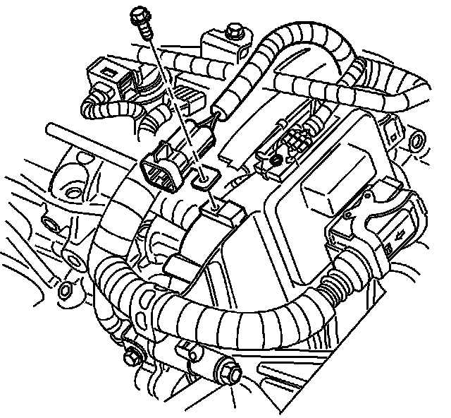 17. Remove the wire harness retainer bolt and retainer from the side of the ECM bracket.