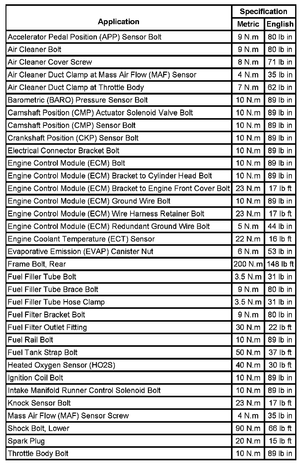 Fastener Tightening Specifications