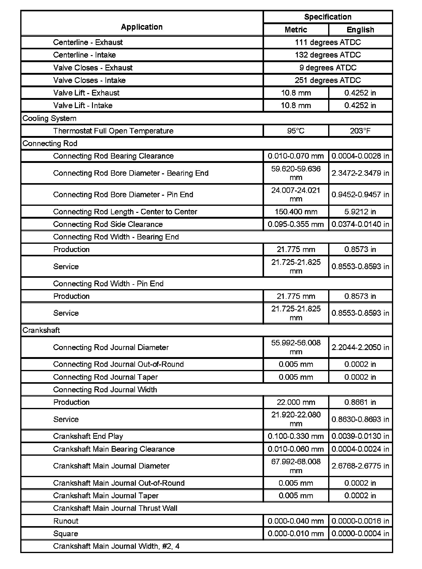 Engine Mechanical Specifications (Part 4):