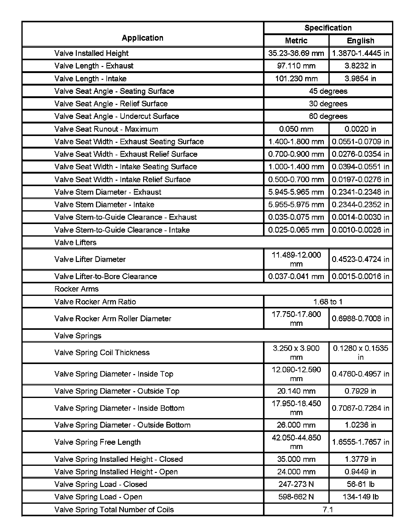 Engine Mechanical Specifications (Part 5):