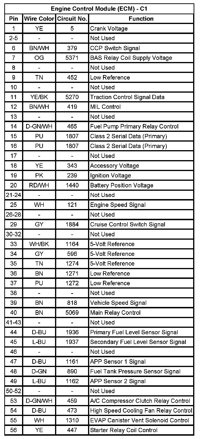 Engine Control Module (ECM) - C2 (Pin 1 To 22):