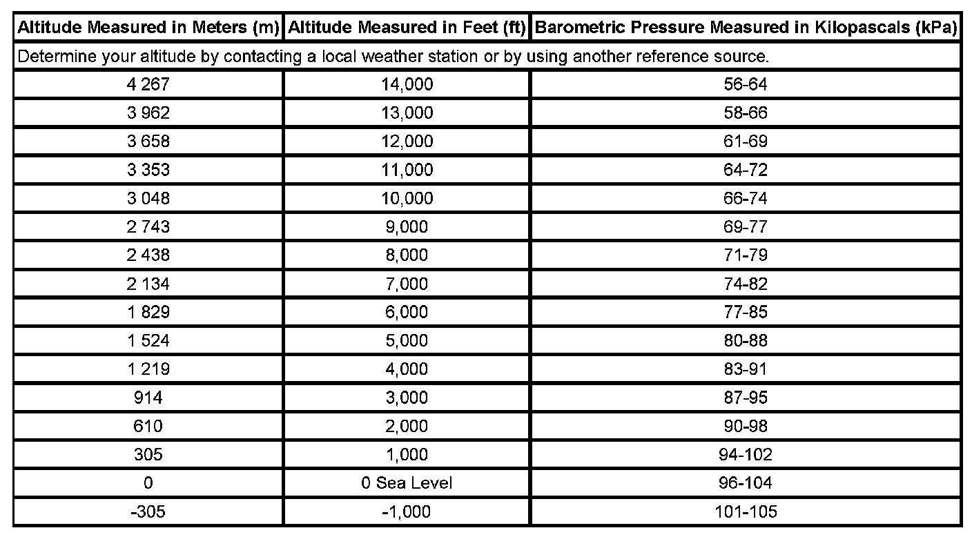 Altitude Versus Barometric Pressure