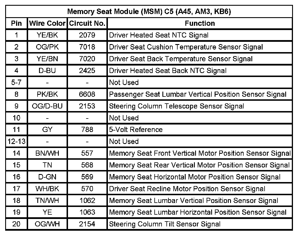 Memory Seat Module (MSM) C5 (A45, AM3, KB6)