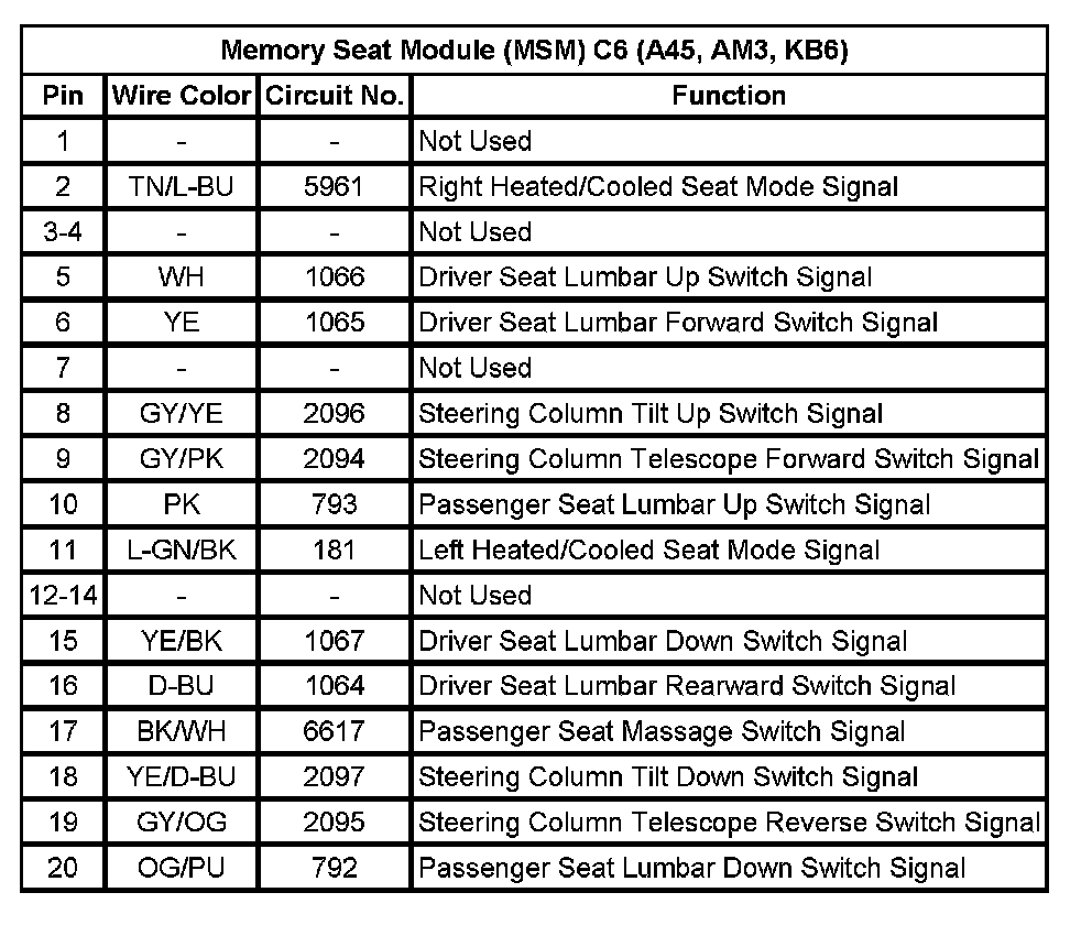 Memory Seat Module (MSM) C1 (A45, AM3, KB6)
