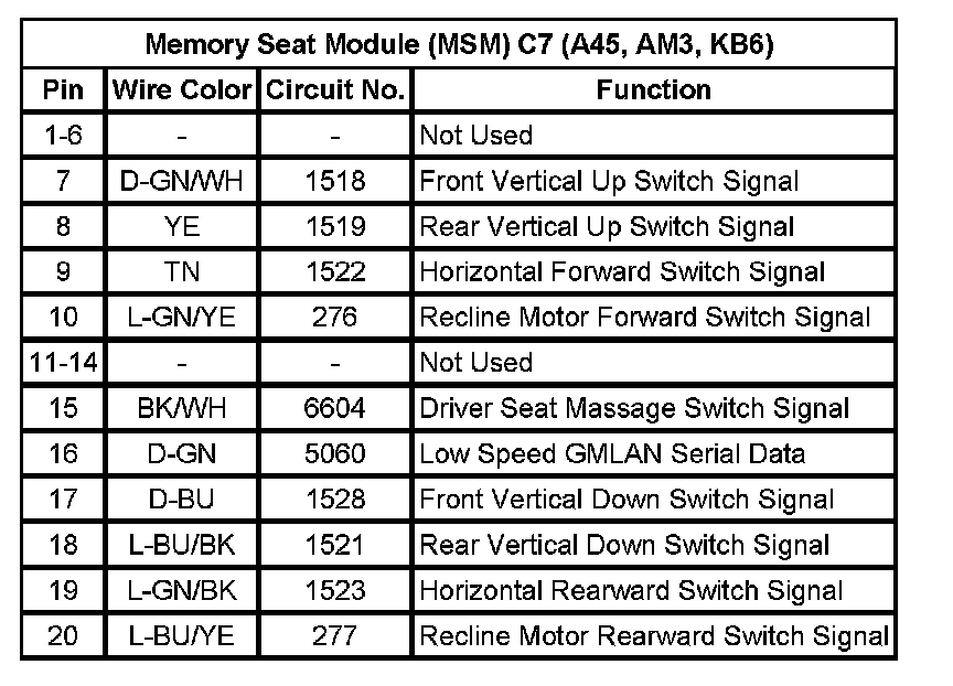 Memory Seat Module (MSM) C7 (A45, AM3, KB6)