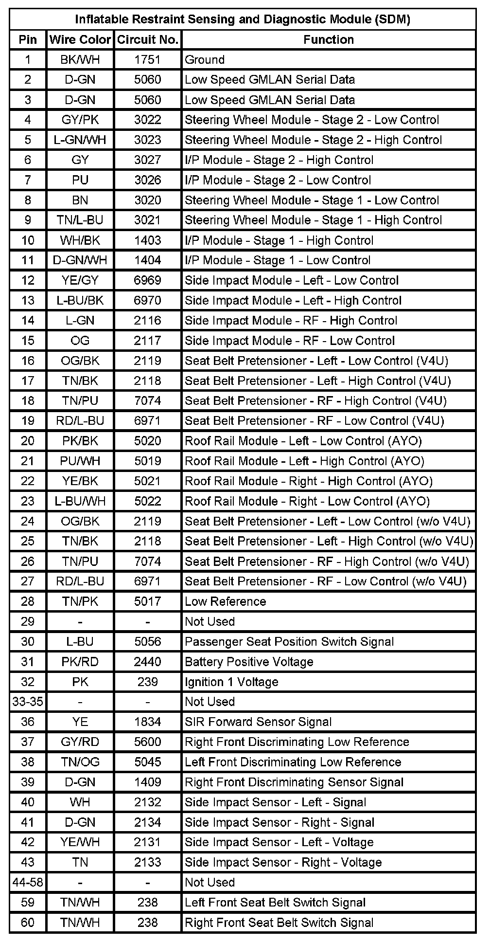 Inflatable Restraint Sensing and Diagnostic Module (SDM)