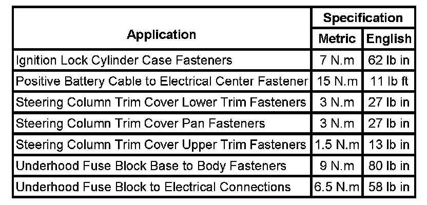 Fastener Tightening Specifications