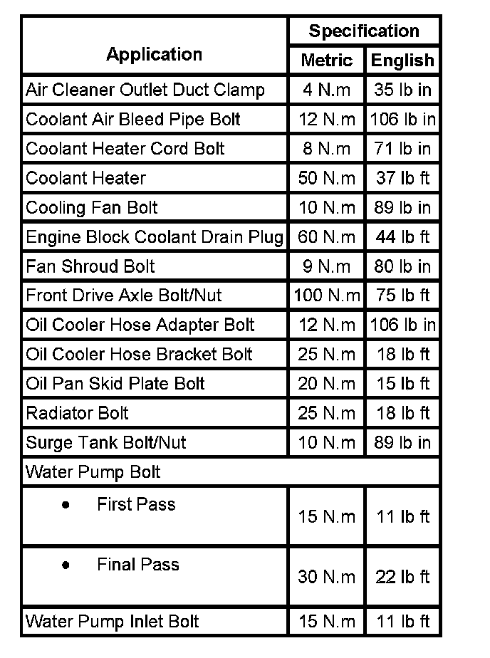Fastener Tightening Specifications: