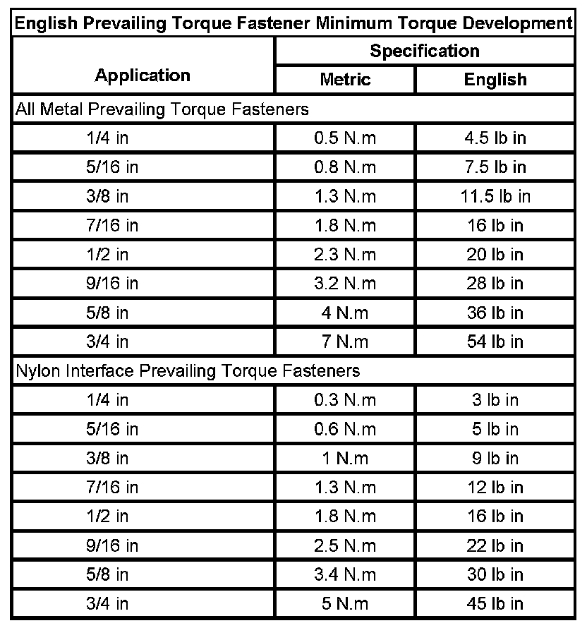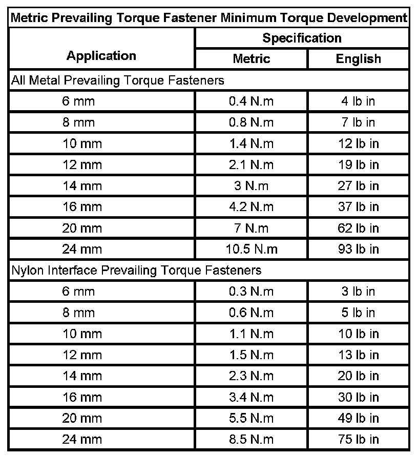 Prevailing Torque Fasteners