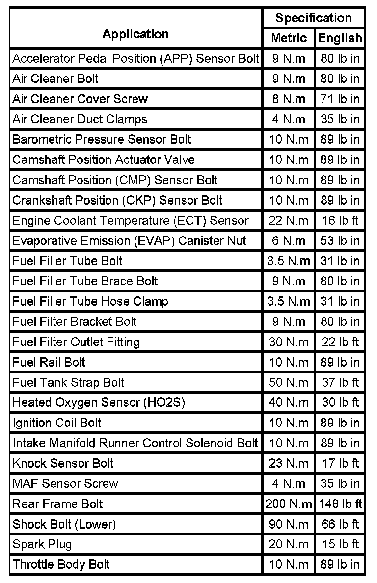 Fastener Tightening Specifications