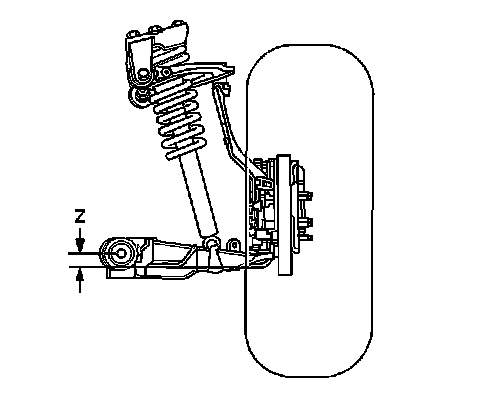 The Z height dimension measurement determines the proper ride height for the front end of the vehicle. There is no adjustment procedure. Repair may require replacement of suspension components.