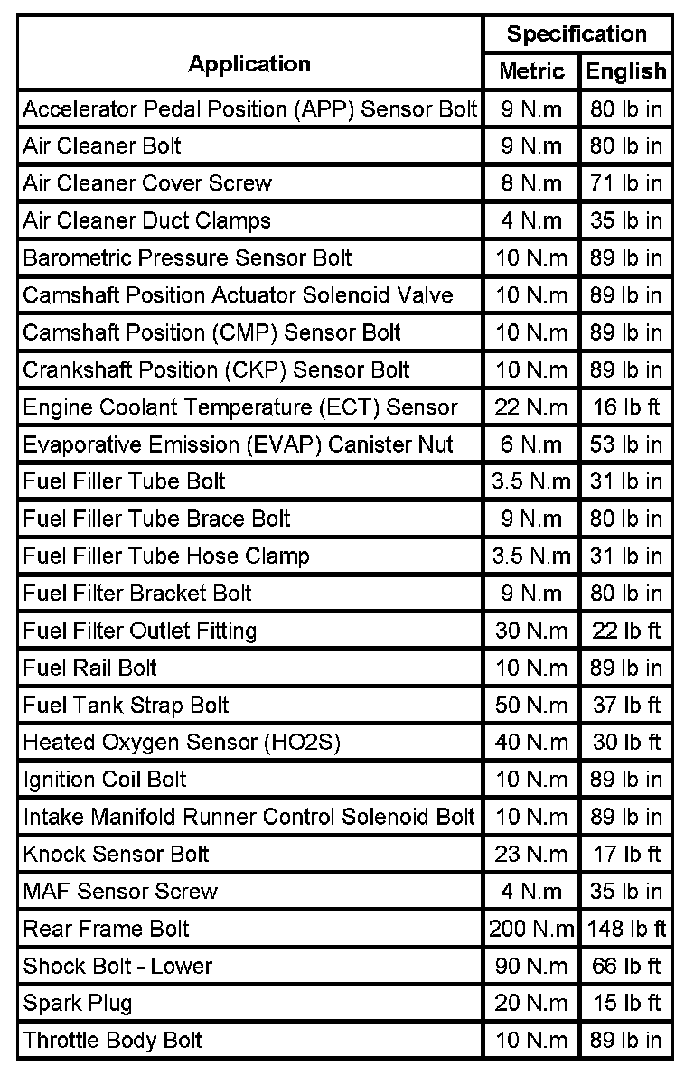 Fastener Tightening Specifications