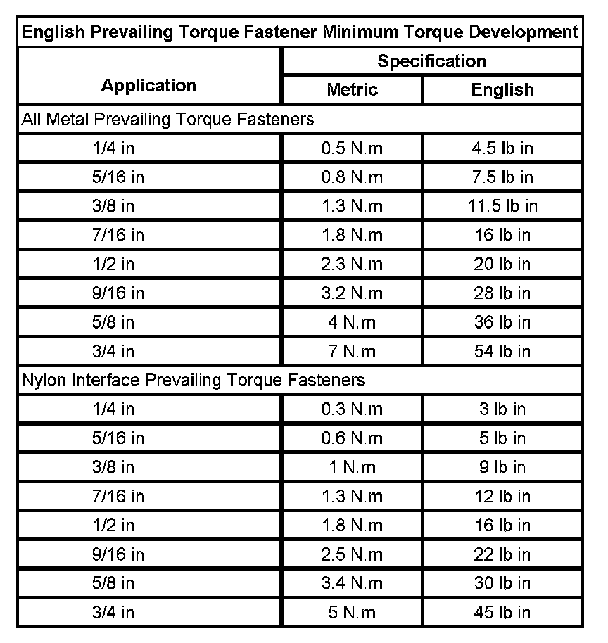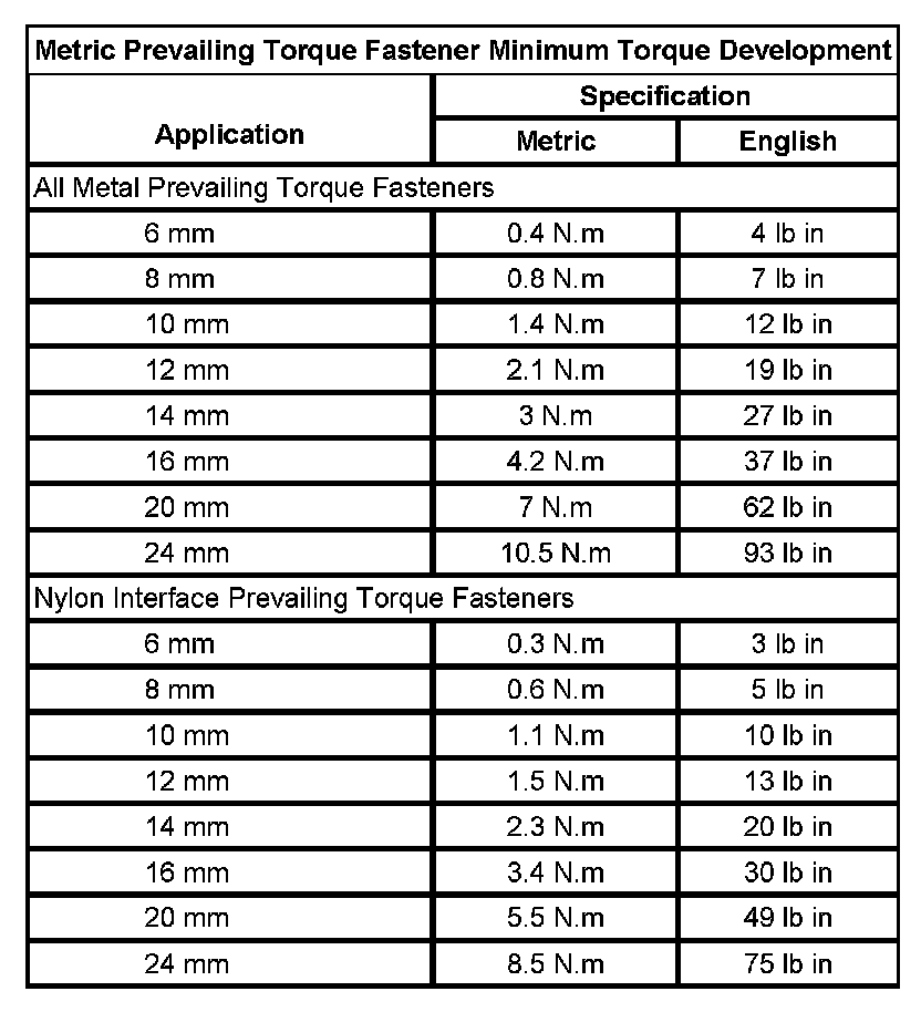 Prevailing Torque Fasteners