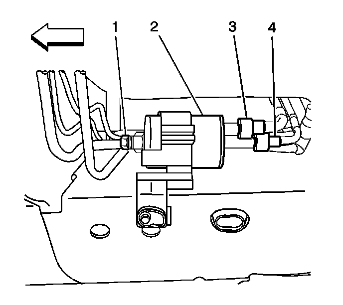 3. Disconnect the quick-connect fittings (3 and 4) at the fuel filter inlet.