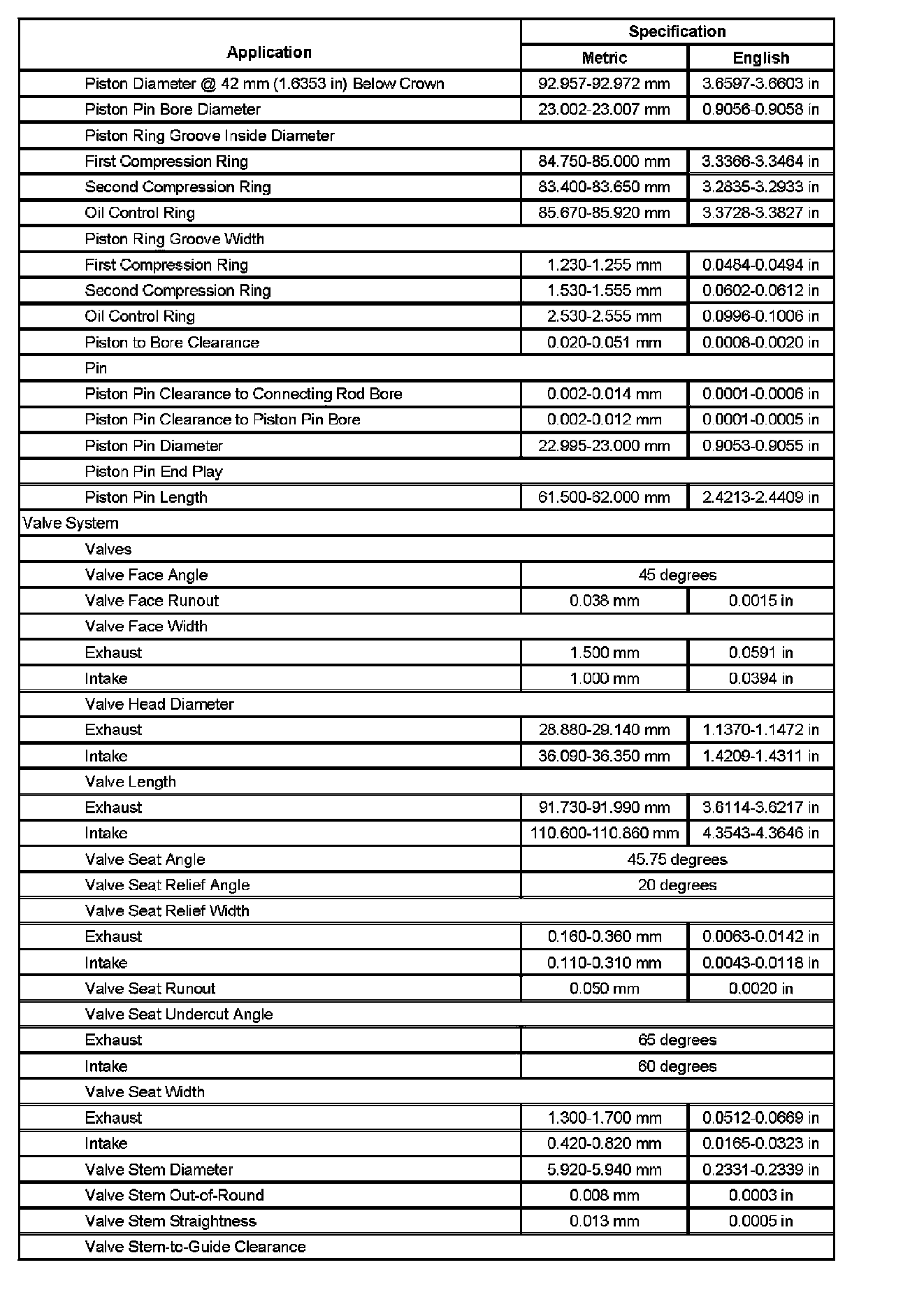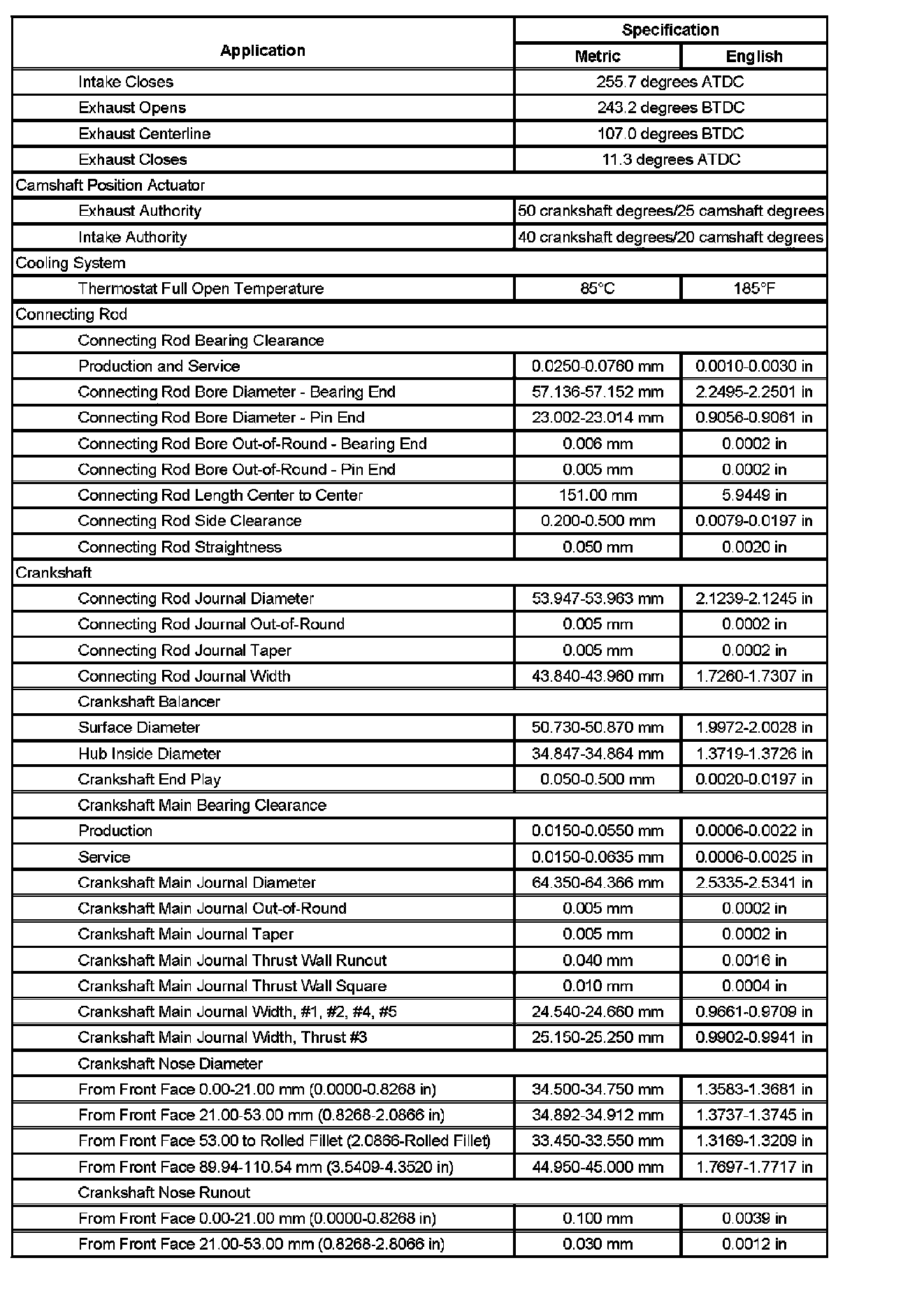 Engine Mechanical Specifications (Part 2):