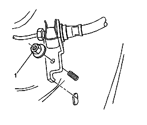 9. Loosen the brake line bracket nut (1).