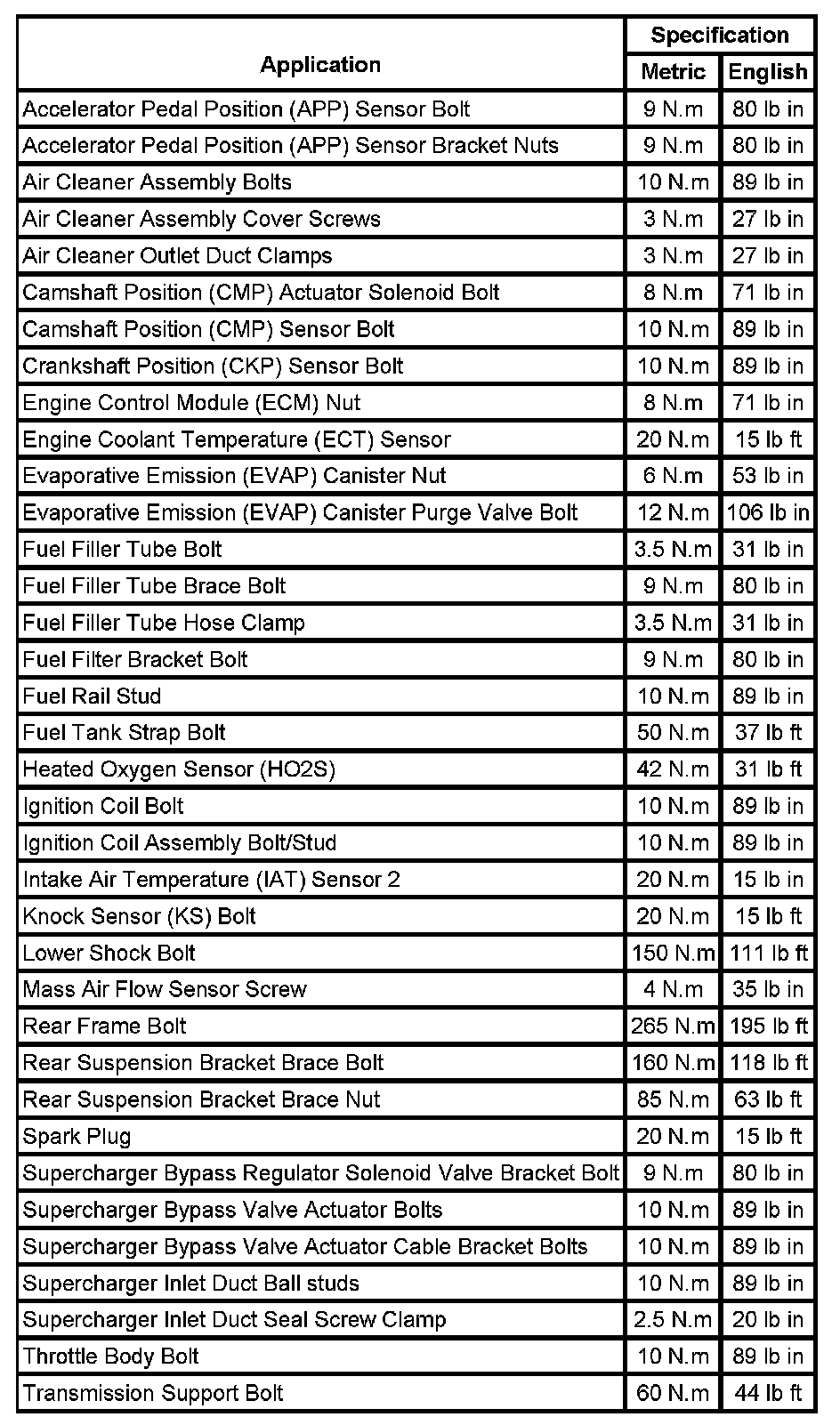 Fastener Tightening Specifications