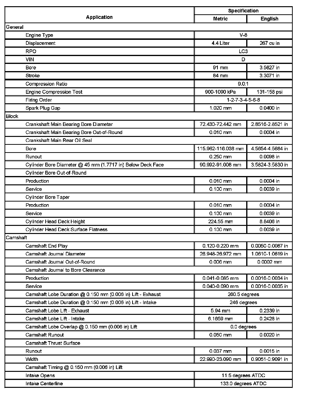Home >> Cadillac >> 2007 >> STS RWD V8-4.4L SC >> Repair and Diagnosis >> Specifications >> Mechanical Specifications >> Engine >> System Specifications >> Engine General Specifications & Service Limits