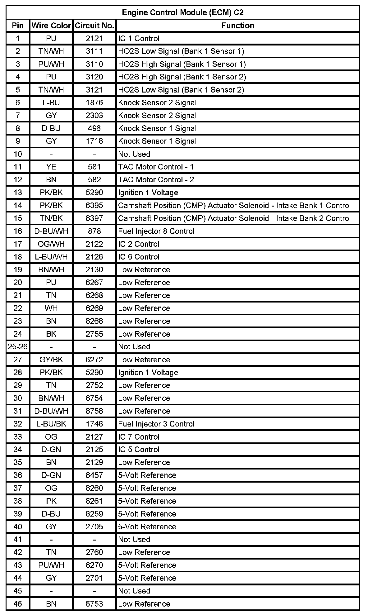 Engine Control Module (ECM) C2 (Pin 1 To 46):