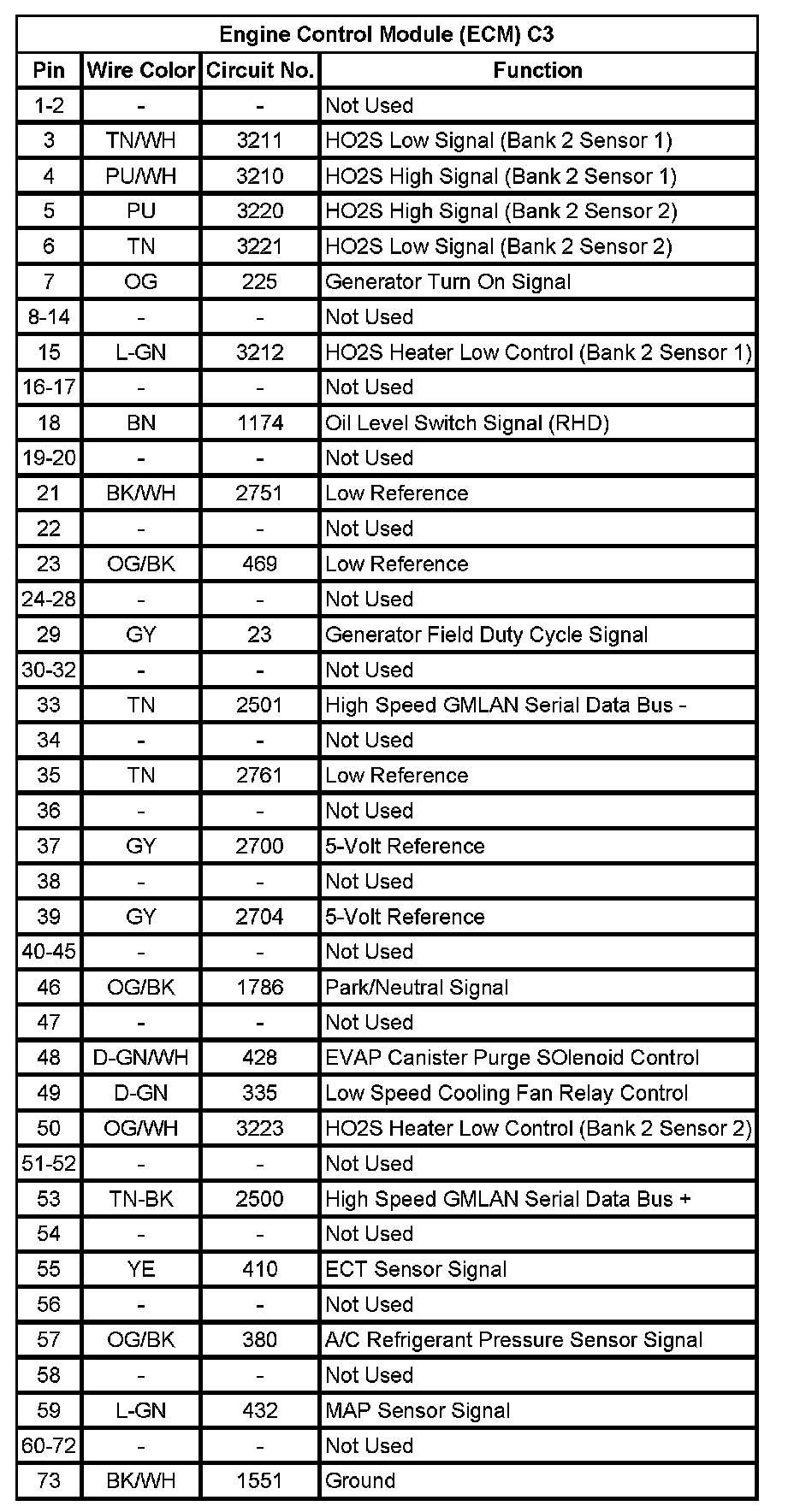Engine Control Module (ECM) C2 (Pin 47 To 73):