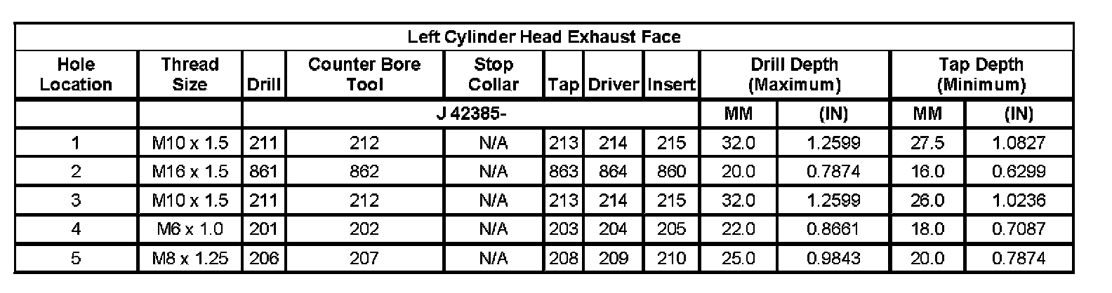 Left Cylinder Head Exhaust Face: