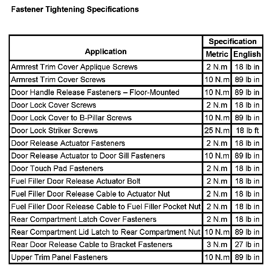 Fastener Tightening Specifications: