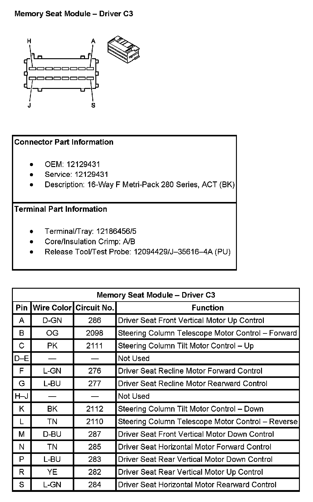 Memory Seat Module - Driver C2 (Pin F11 To F16):